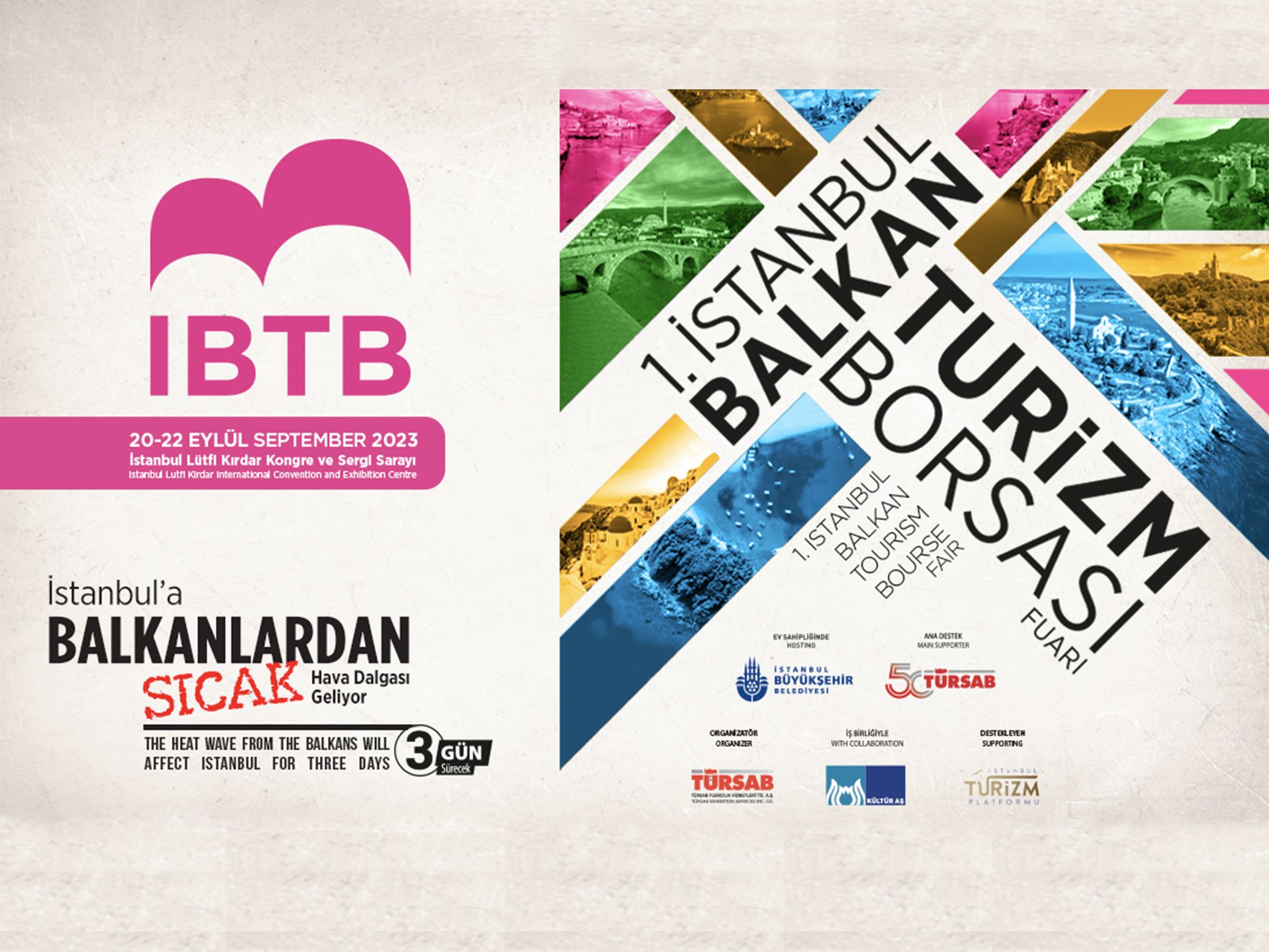 İstanbul Büyükşehir Belediyesi ev sahipliğinde, TÜRSAB ana desteği ve İBB Kültür A.Ş. iş birliği ile TÜRSAB Fuarcılık Hizmetleri A.Ş. tarafından organize edilen İstanbul Balkan Turizm Borsası Fuarı’nın ilki 20-22 Eylül 2023 tarihleri arasında gerçekleşti. Lütfi Kırdar Uluslararası Kongre ve Sergi Sarayı’nda düzenlenen IBTB Fuarı, Türkiye ve Balkanlar arasındaki ilişkileri güçlendirirken bölgede bulunan ve komşu olan tüm ülkelerin turizm profesyonellerini tek alanda bir araya getirdi. IBTB İstanbul 1.Balkan Turizmi Borsası Programını buradan, broşürünü buradan inceleyebilirsiniz.